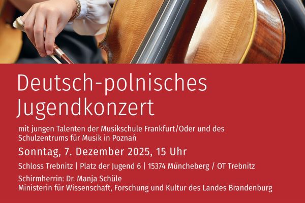 Die Deutsche Gesellschaft e. V. und ihr Freundeskreis Schlösser und Gärten der Mark in der Deutschen Gesellschaft e. V. laden Sie herzlich zu diesem deutsch-polnischen Jugendkonzert ein.